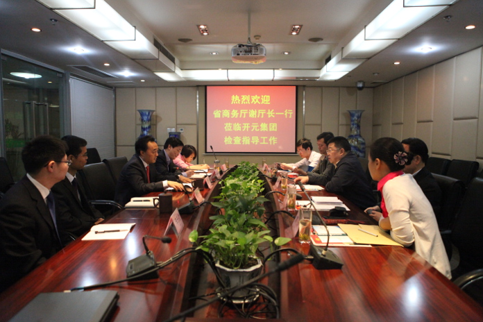 首先,趙董事長(zhǎng)對(duì)謝廳長(zhǎng)一行的來訪表示了熱烈歡迎,并感謝省商務(wù)廳一直以來對(duì)開元集團(tuán)的支持與政策指導(dǎo)。緊接著,趙董事長(zhǎng)就集團(tuán)各個(gè)業(yè)務(wù)板塊的發(fā)展情況向謝廳長(zhǎng)作了全面詳實(shí)的報(bào)告,重點(diǎn)介紹了集團(tuán)境外投資的情況,他指出,開元集團(tuán)是四川省“走出去”的代表企業(yè),在老撾、緬甸、加拿大都有投資項(xiàng)目或意向,特別是老撾鉀鹽礦項(xiàng)目,目前已實(shí)現(xiàn)一期投產(chǎn),二期工程建設(shè)也已全面啟動(dòng)。針對(duì)老撾項(xiàng)目,希望省商務(wù)廳給予更多的政策與資金支持。