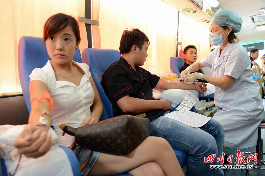 受暴雨天氣和放暑假的影響,連日來,成都市獻血人數急降,成都市血液中心各種血型出現緊張現象。7月23日,當得知成都市血液中心血庫出現緊張現象后,成都市武侯區(qū)玉林街道辦倪家橋社區(qū)黨委、武侯區(qū)玉林街道辦倪家橋社區(qū)區(qū)域化黨委聯合開展“共筑中國夢、志愿我現行”無償獻血活動,組織位于該轄區(qū)的四川省開元集團、四川匯力農資連鎖有限公司、禾風料理、何日君溫泉酒店等13家企業(yè)120名員工來到成都市血液中心積極鮮血,當天共獻出了2萬毫升鮮血。(四川日報記者 李向雨 攝影報道)