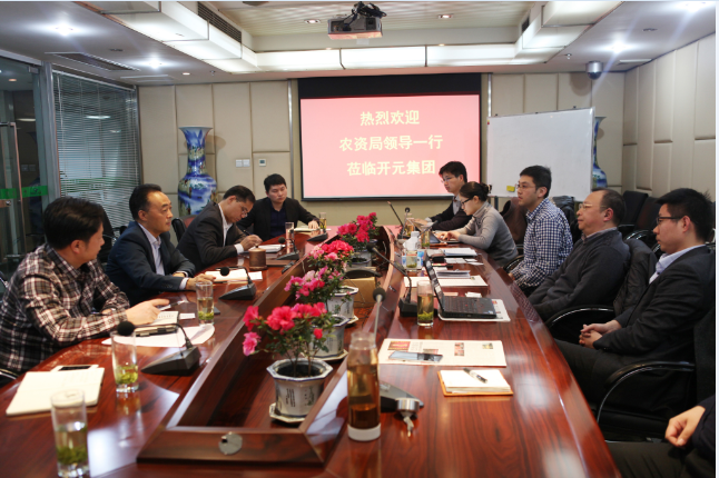 1月20日,中華全國供銷合作總社農業生產資料局副巡視員符純華及安徽阡陌網絡科技有限公司董事長郭丹等一行七人蒞臨開元,主要就2016年春耕備耕進展情況,企業轉型升級、創新經營、為農服務等典型經驗展開調研,趙董事長及有關單位負責人出席座談。